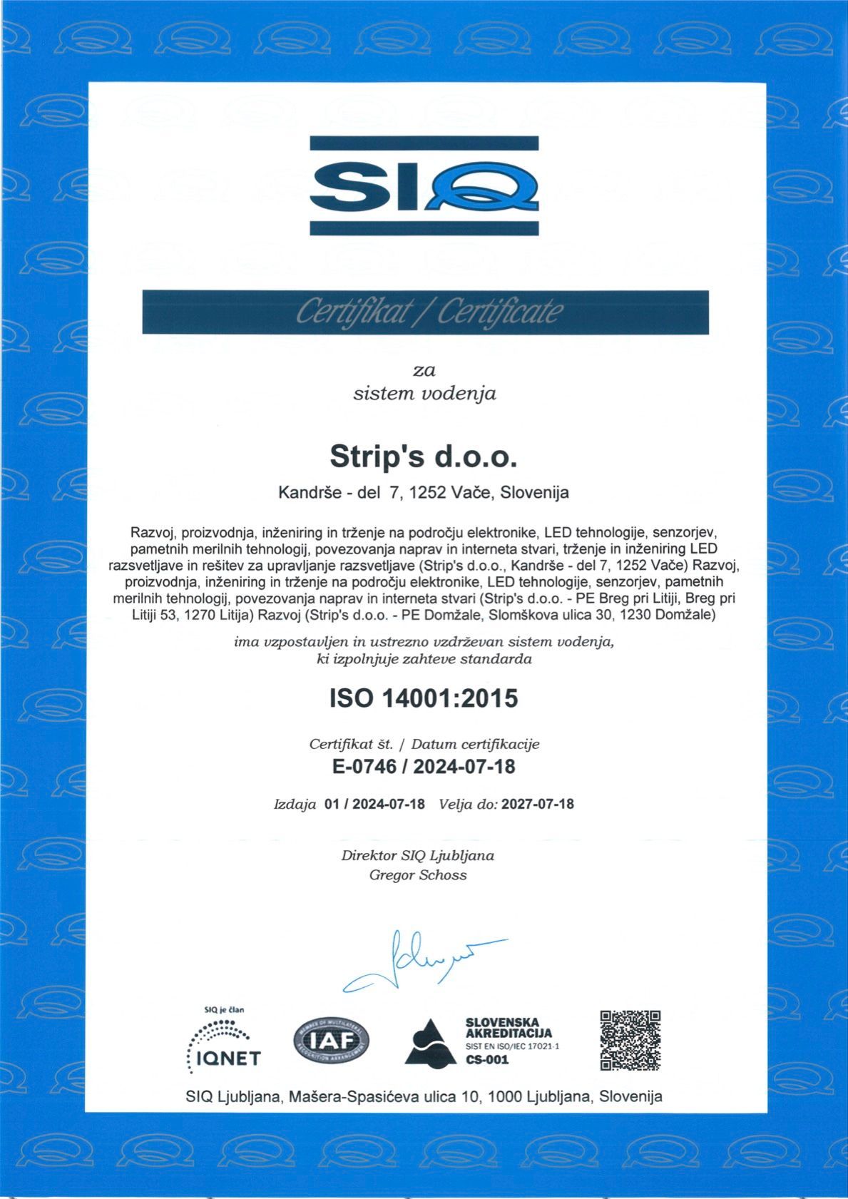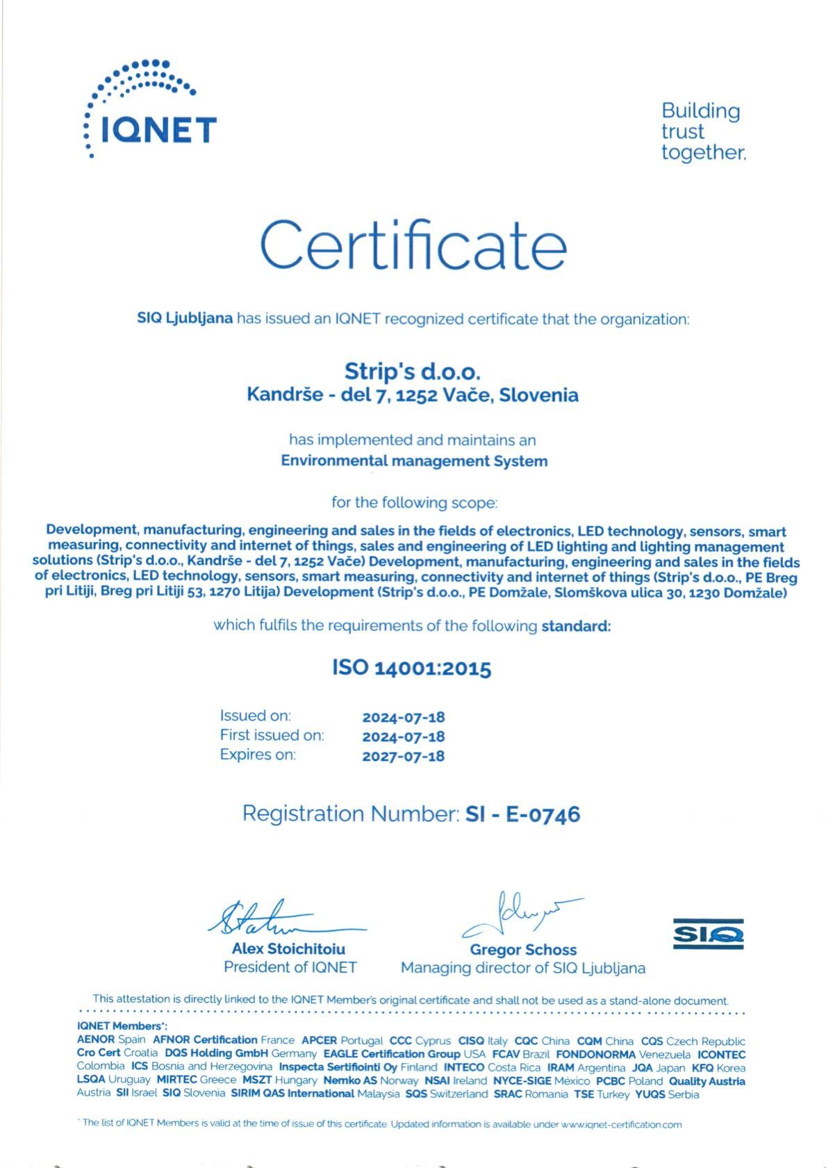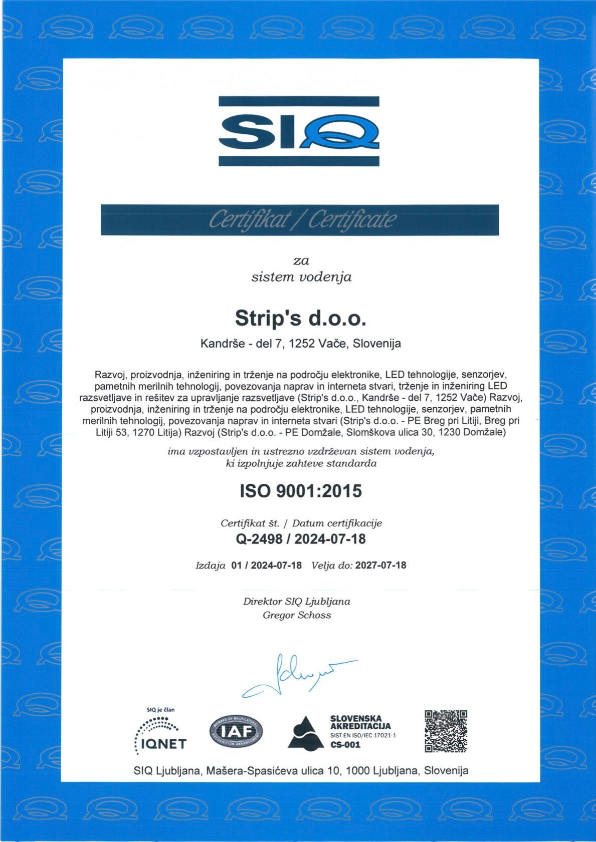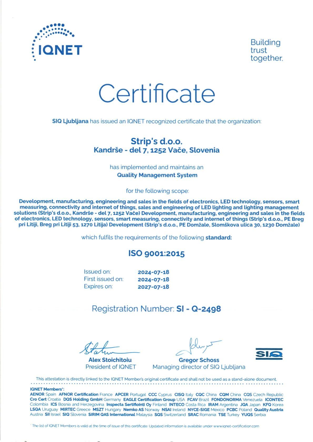 Naš celosten koncept zagotavljanja kakovosti temelji na standardu ISO 9001: 2015, ki je priznan po celem svetu in ki ga dopolnjujeta standarda ISO 14001: 2015 in ISO 50001: 2011.